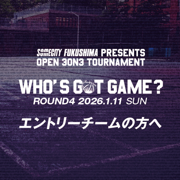 上位2チームが「SOMECITY 2024-2025 FUKUSHIMA」(決勝戦)への参加権を獲得できます。決勝戦は、予選(WHO’S GOT GAME?)参加時のメンバーで参加となりますが、1名の追加・もしくは変更は可能です。やむを得ない事情があり変更したい場合は、事務局(黒澤)までご連絡ください。